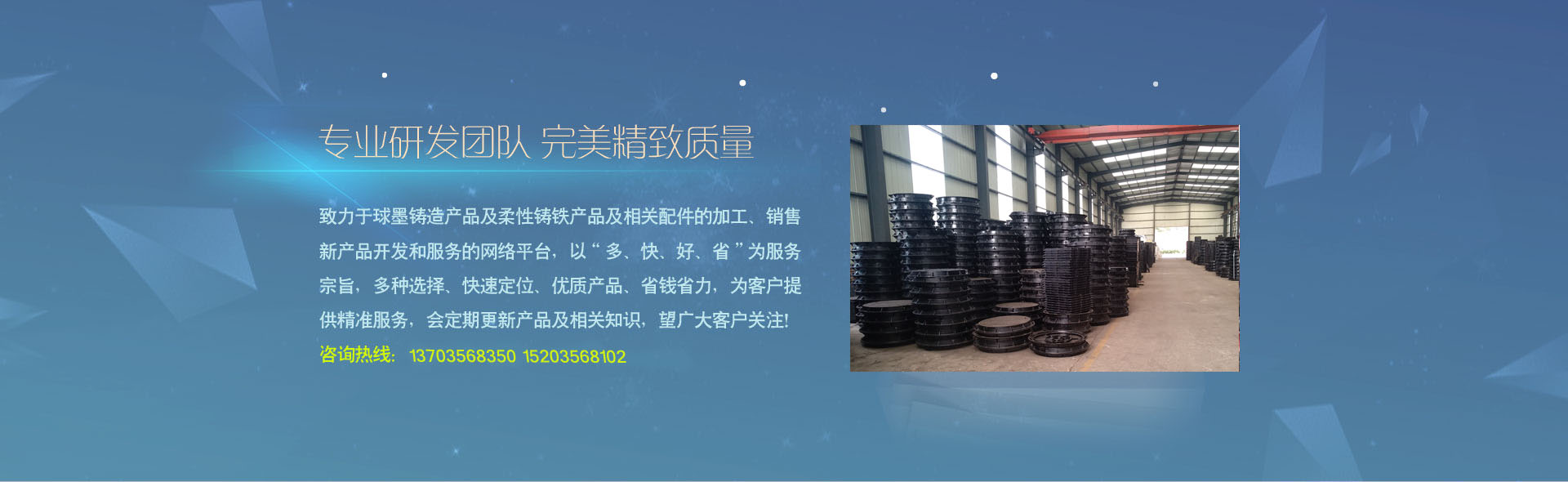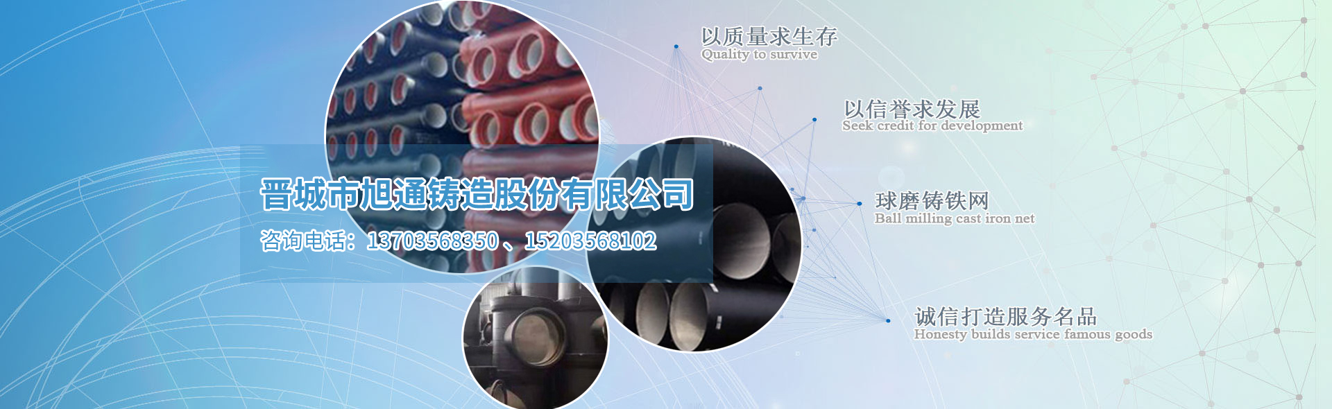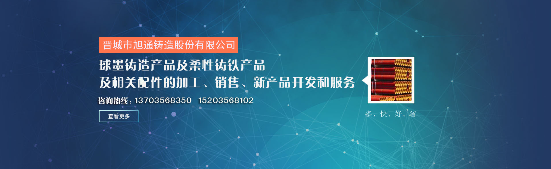 晉城市旭通鑄造股份有限公司是一家致力于球墨鑄造產(chǎn)品及柔性鑄鐵產(chǎn)品及相關(guān)配件的加工、銷售、新產(chǎn)品開發(fā)和服務(wù)的網(wǎng)絡(luò)平臺(tái),以“多、快、好、省”為服務(wù)宗旨,多種選擇、快速定位、優(yōu)質(zhì)產(chǎn)品、省錢省力,為客戶提供精準(zhǔn)服務(wù)......